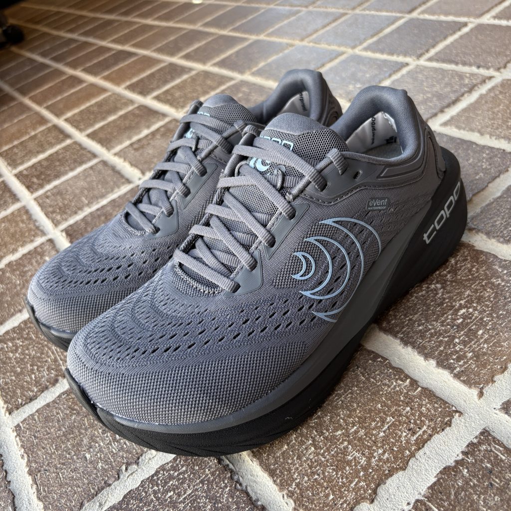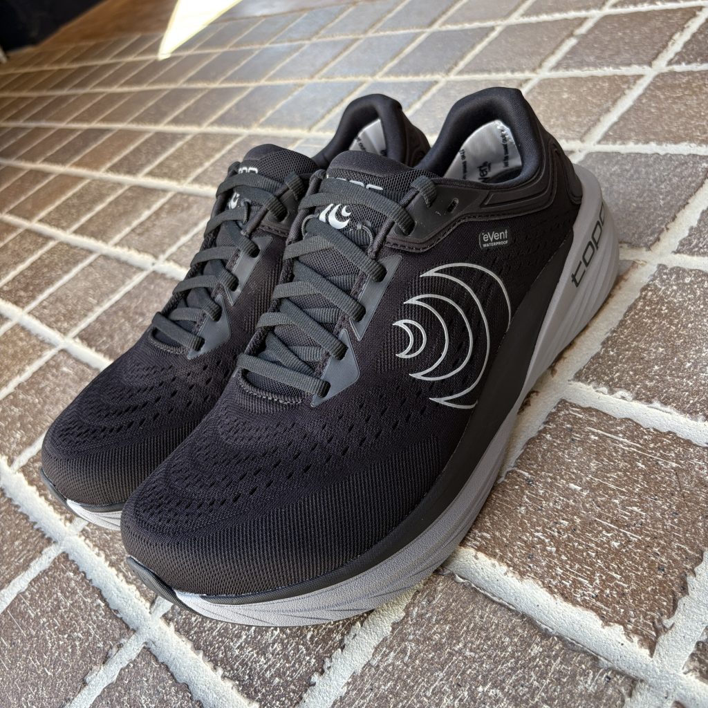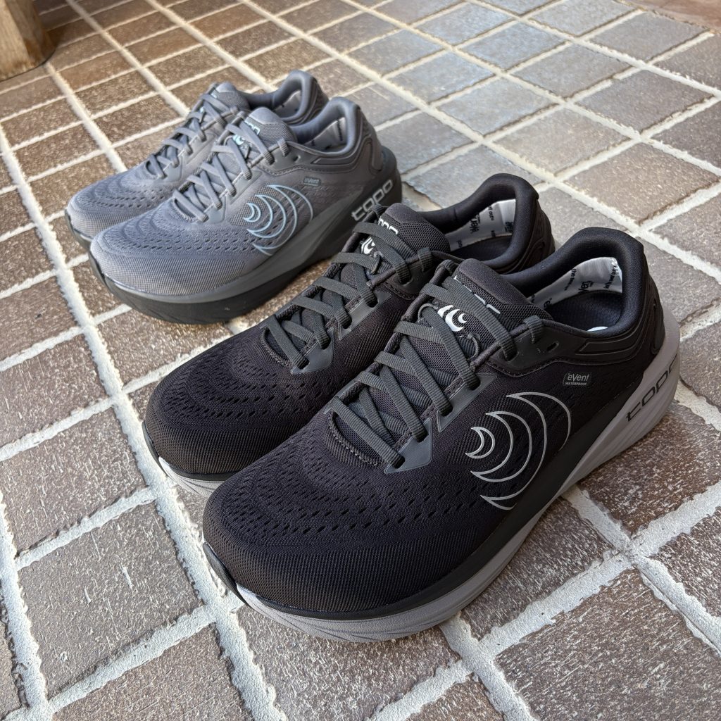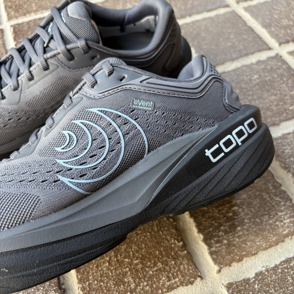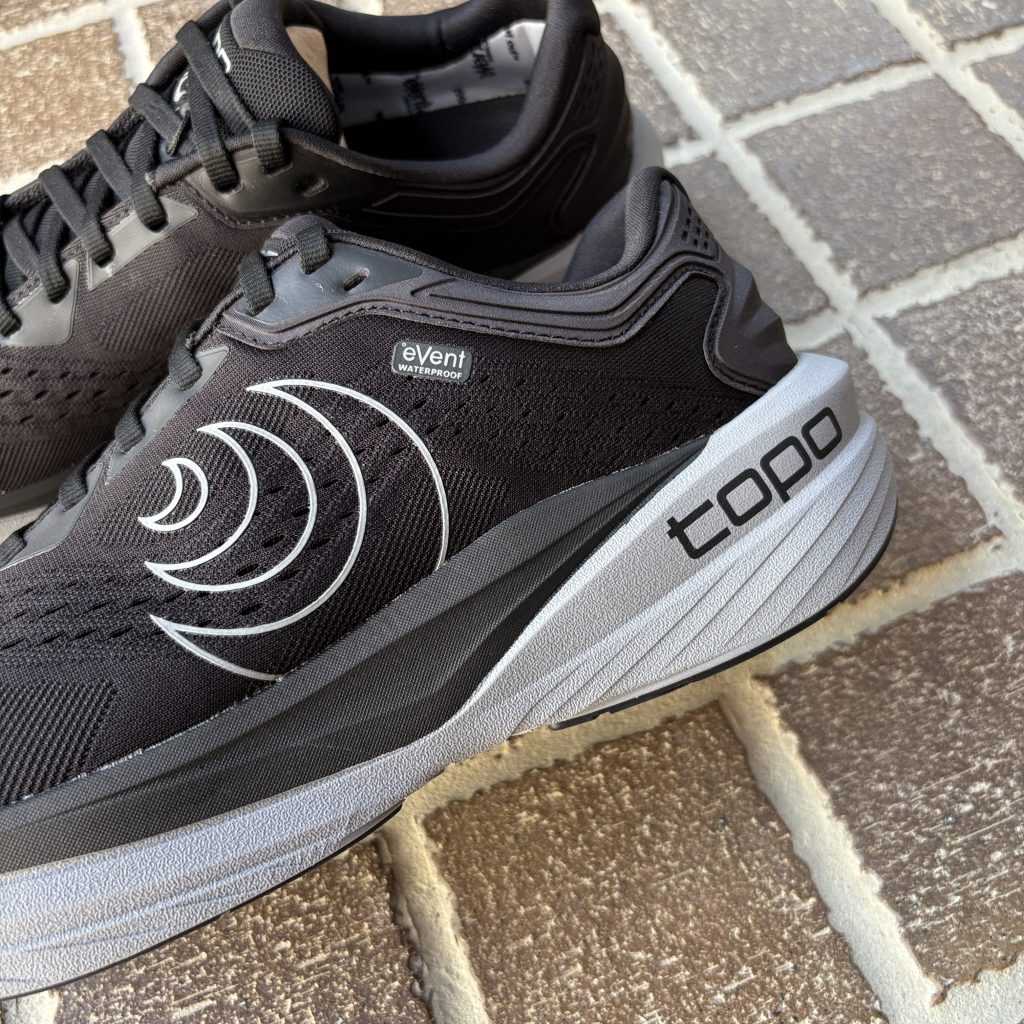 高クッションのニュートラルトレーナーPHANTOM 4 をベースに、Topo 初となる防水性能を備えたロードシューズとして進化。