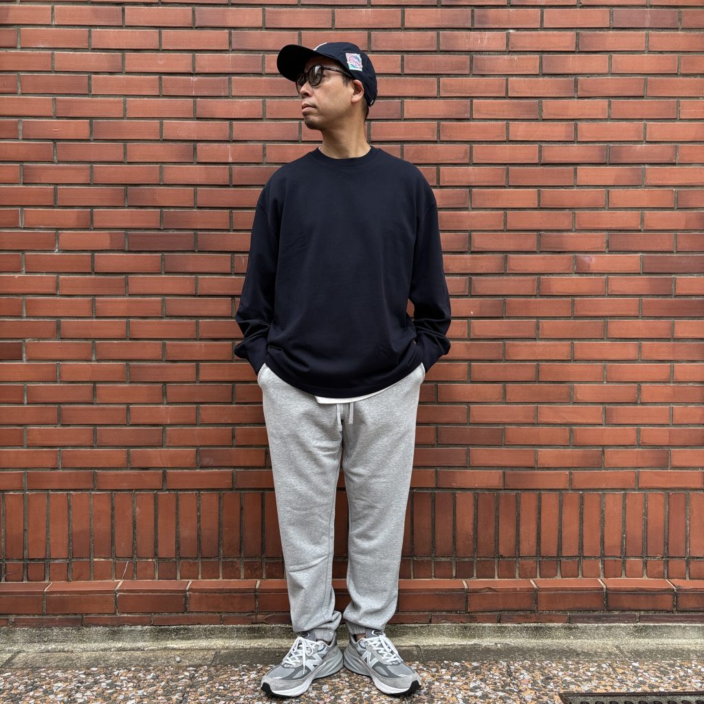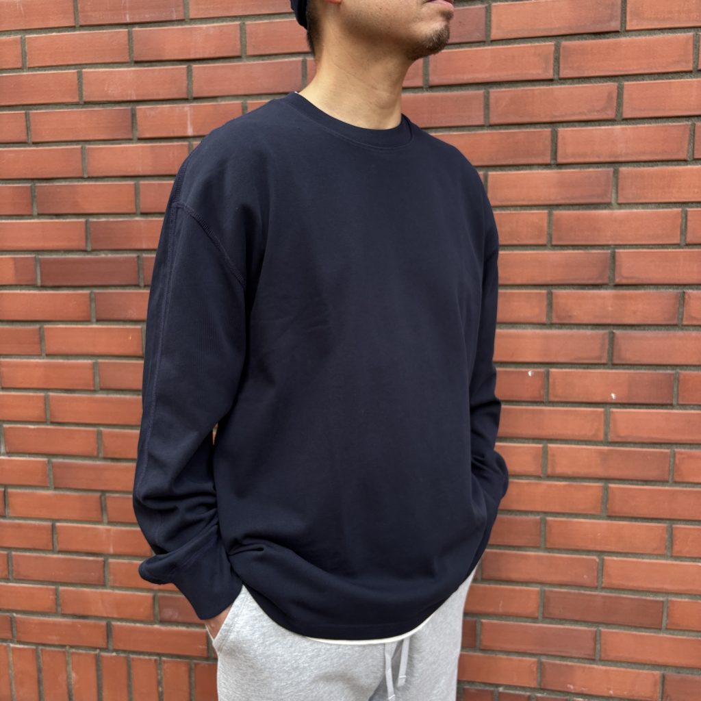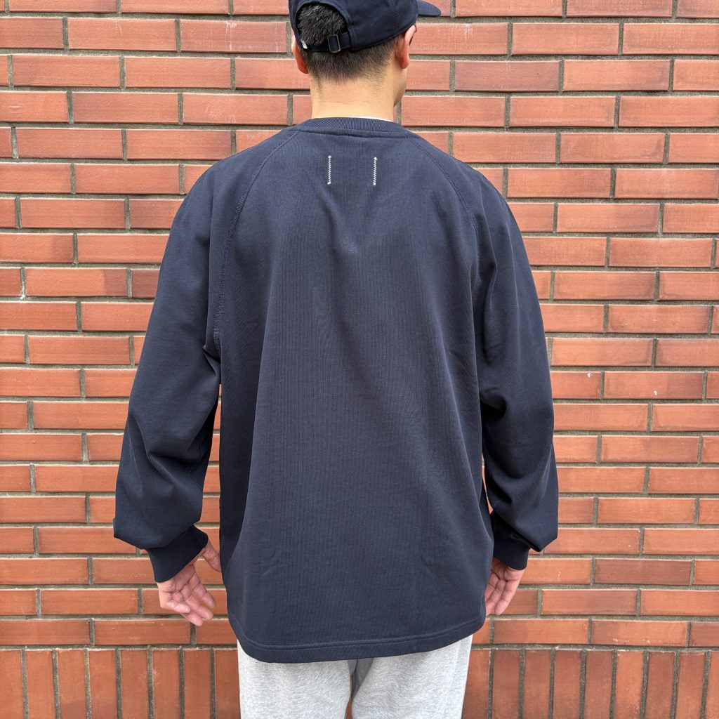 Relaxed Fitが特徴で、デザインには1×1リブの襟と袖口、セミラグランスリーブ、シグネチャーのフラットロックシームを採用しています。