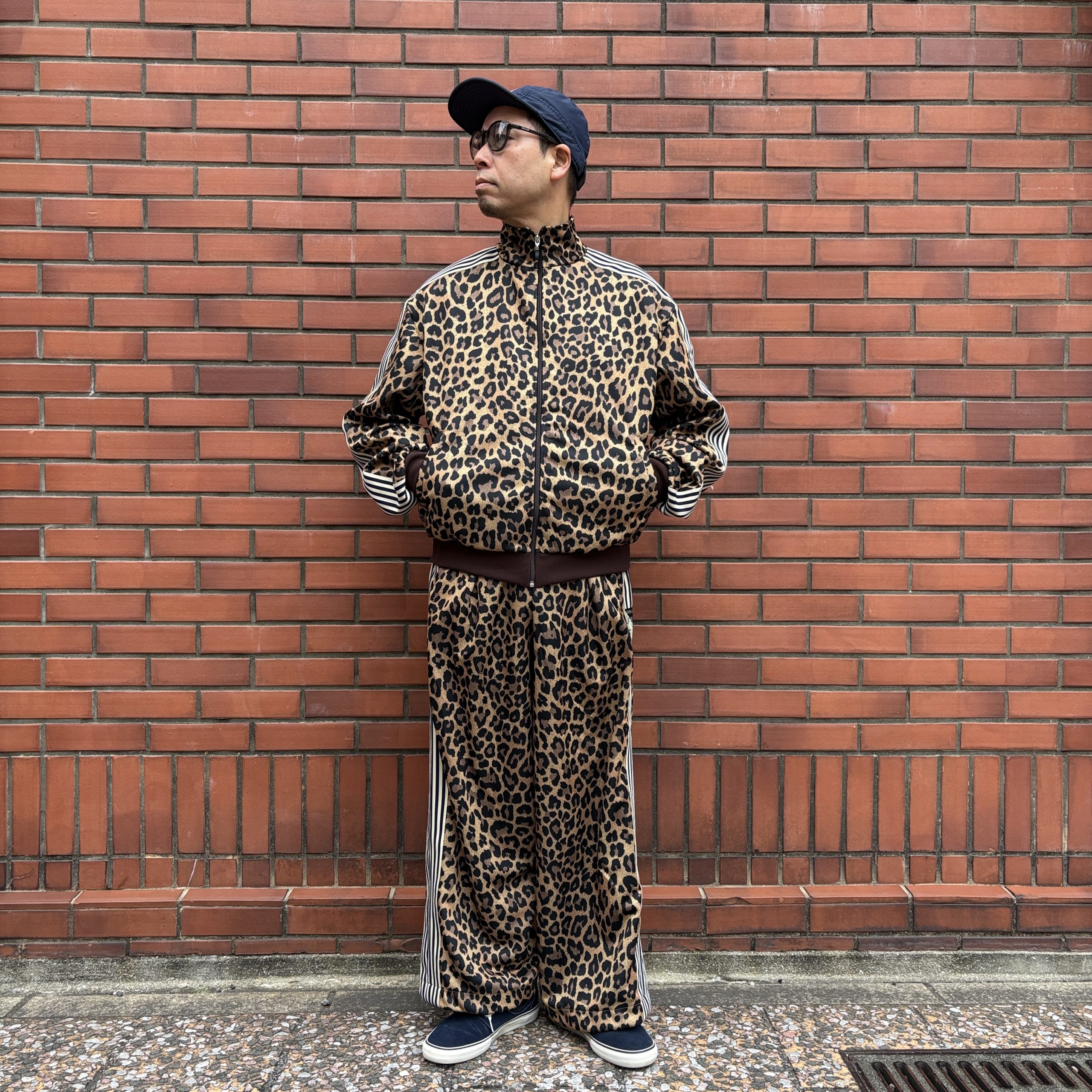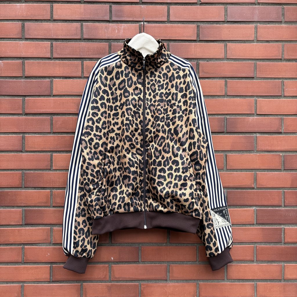 インパクト抜群のレパード柄のトラックジャケット。両サイドのラインテープがアクセント。