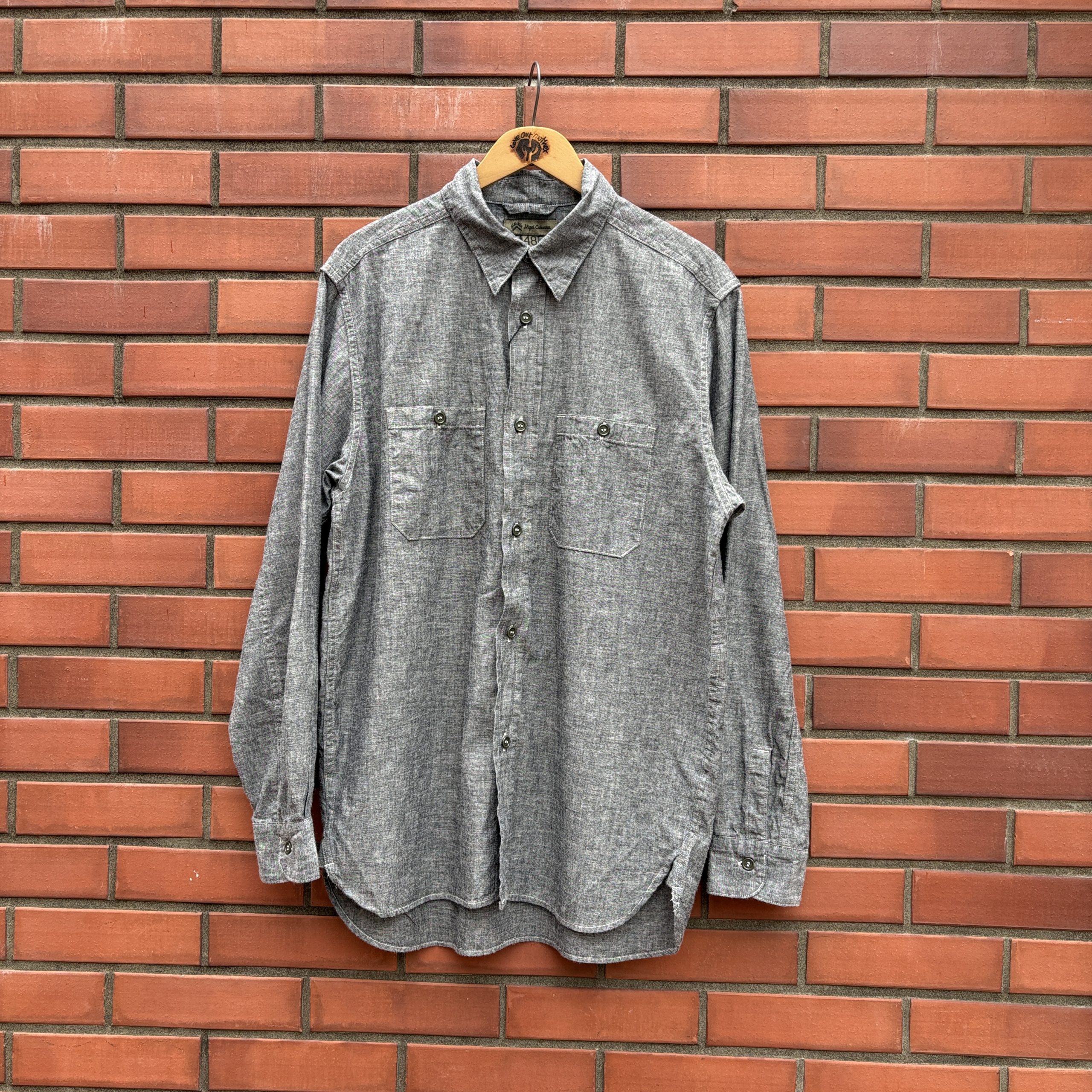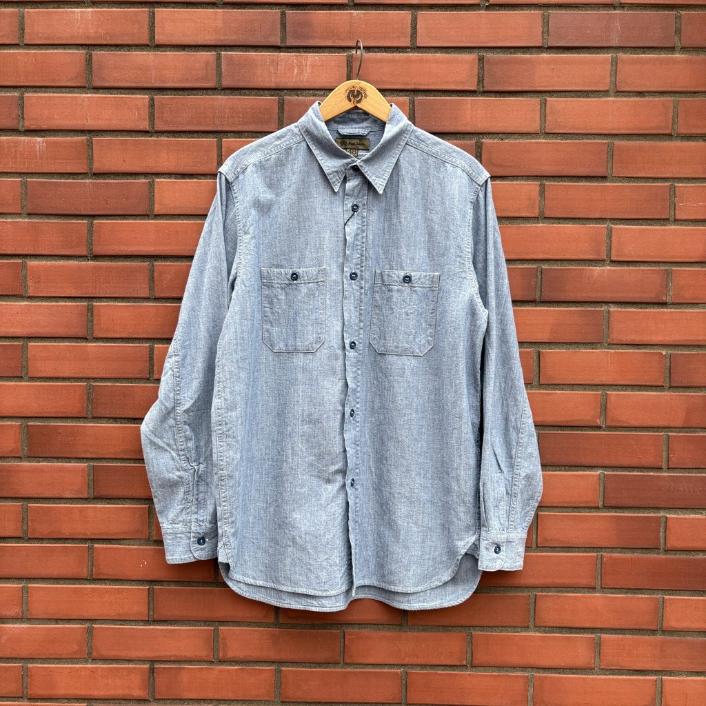 ヴィンテージのUSネイビーのシャンブレーシャツをベースに、オリジナルファブリックを使用した一着。